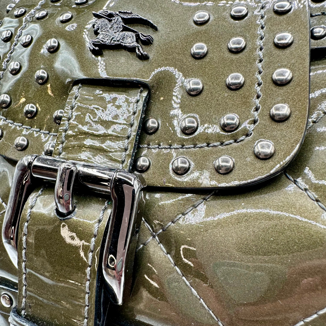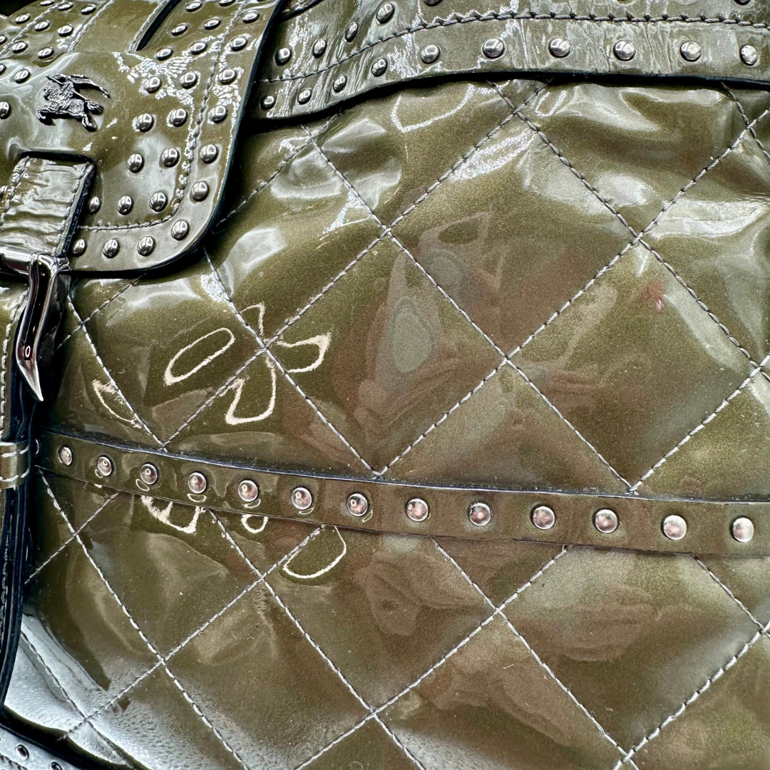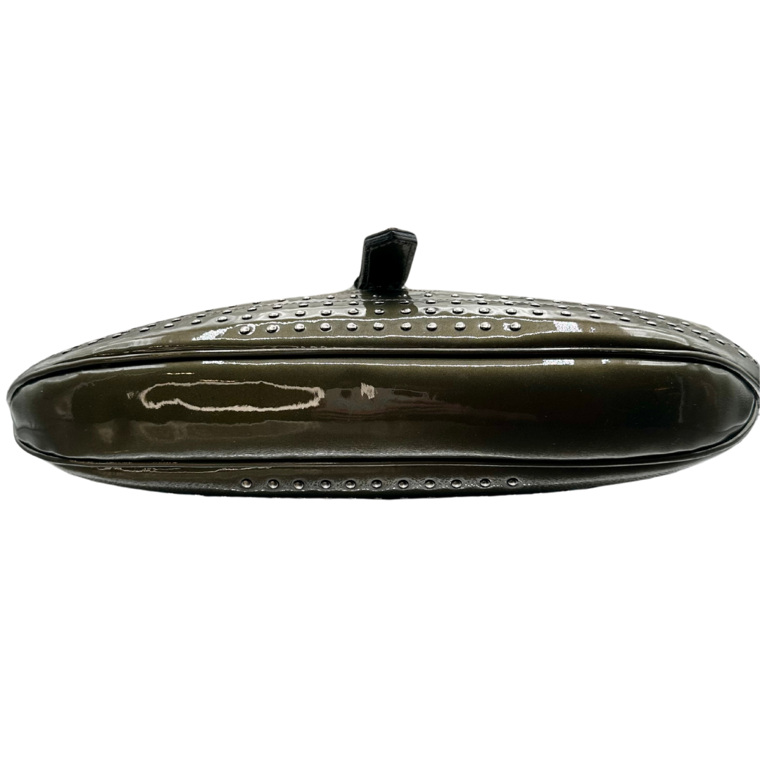 The Burberry Brooke Patent Hobo in Bronze is where edgy meets elegance. Crafted in glossy patent leather with a rich, metallic bronze finish, this slouchy yet structured silhouette is elevated by striking gunmetal studs and hardware. The mix of soft curves and bold detailing creates a modern contrast that’s effortlessly cool and unmistakably Burberry. It's the perfect statement piece for those who love a touch of rebellion wrapped in high fashion.